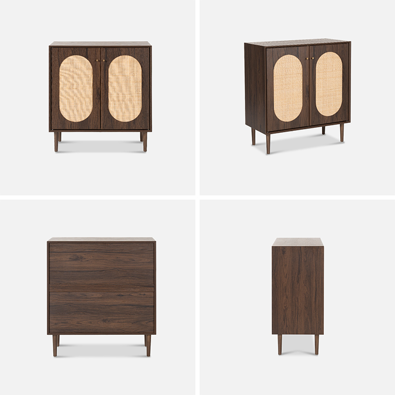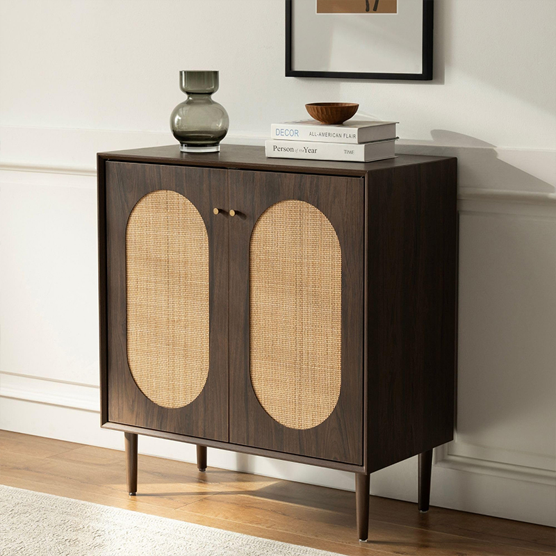 Ana sayfa / Ürünler / Dolap / Ceviz Rengi İki Kapılı Rustik Tarz Ahşap Rattan Dolap (Y-C40)