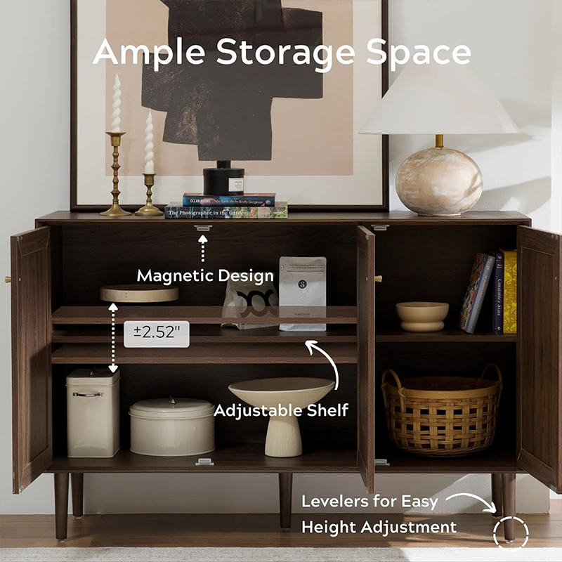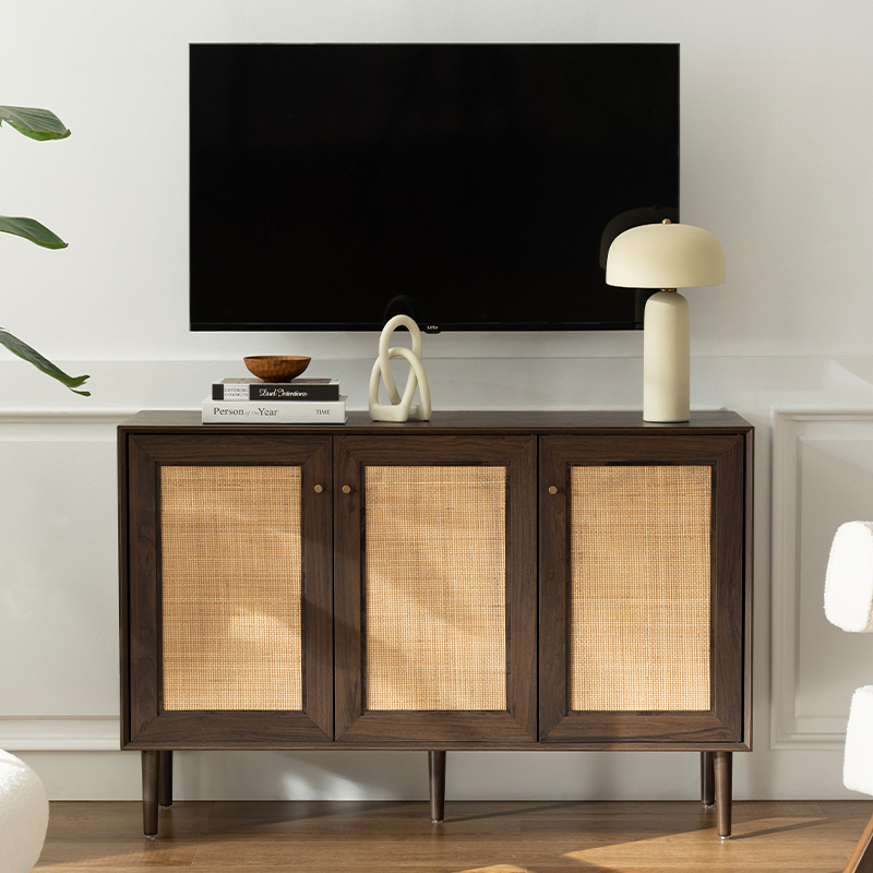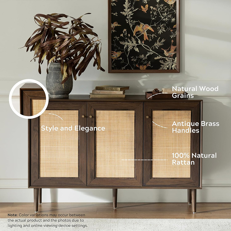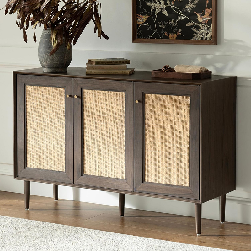 Ana sayfa / Ürünler / Dolap / Ceviz Rengi Ahşap Rattan Üç Kapılı Mutfak Depolama Dolabı(Y-C42)