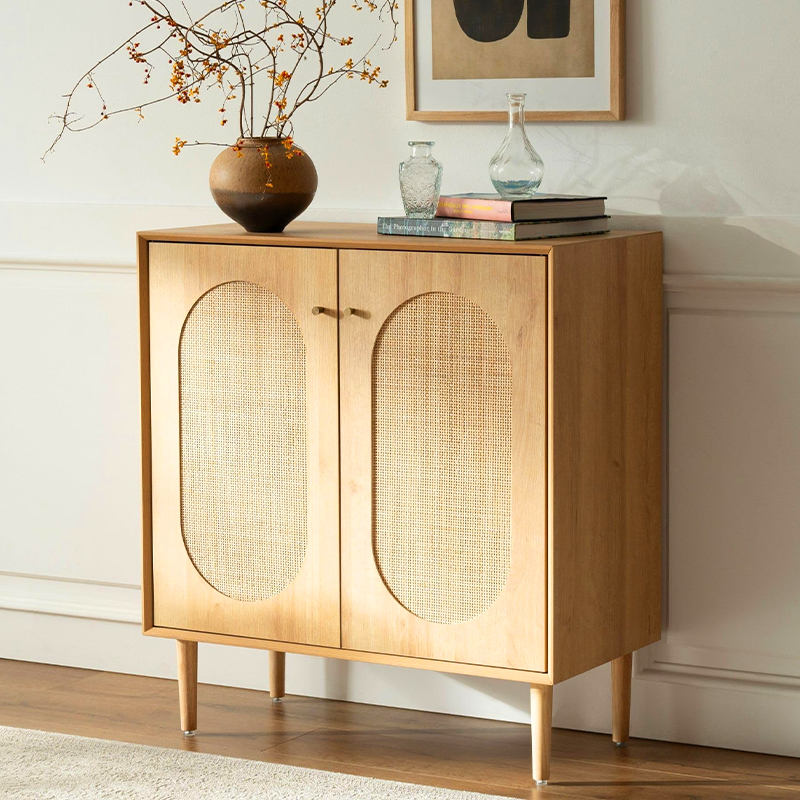 İki Kapılı Rustik Tarzda Ahşap Rattan Dolap Y-C40, evinizdeki herhangi bir odaya rustik bir çekicilik katmak için iyi olan, modaya uygun ve çok yönlü bir mobilya parçasıdır. Bu dolap, dayanıklılığını artıran ve ona çekici bir estetik kazandıran yüksek kaliteli ahşap ve rattan malzemelerden yapılmıştır.